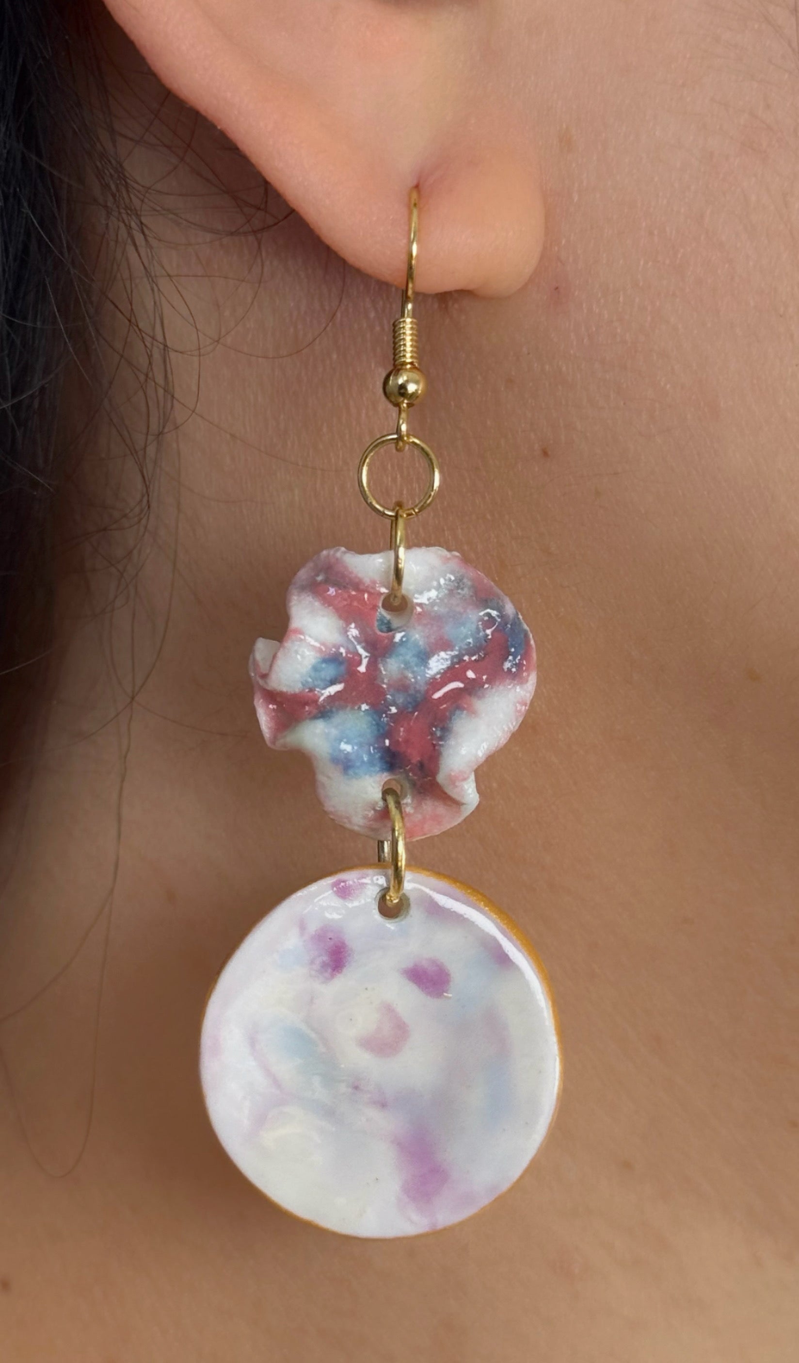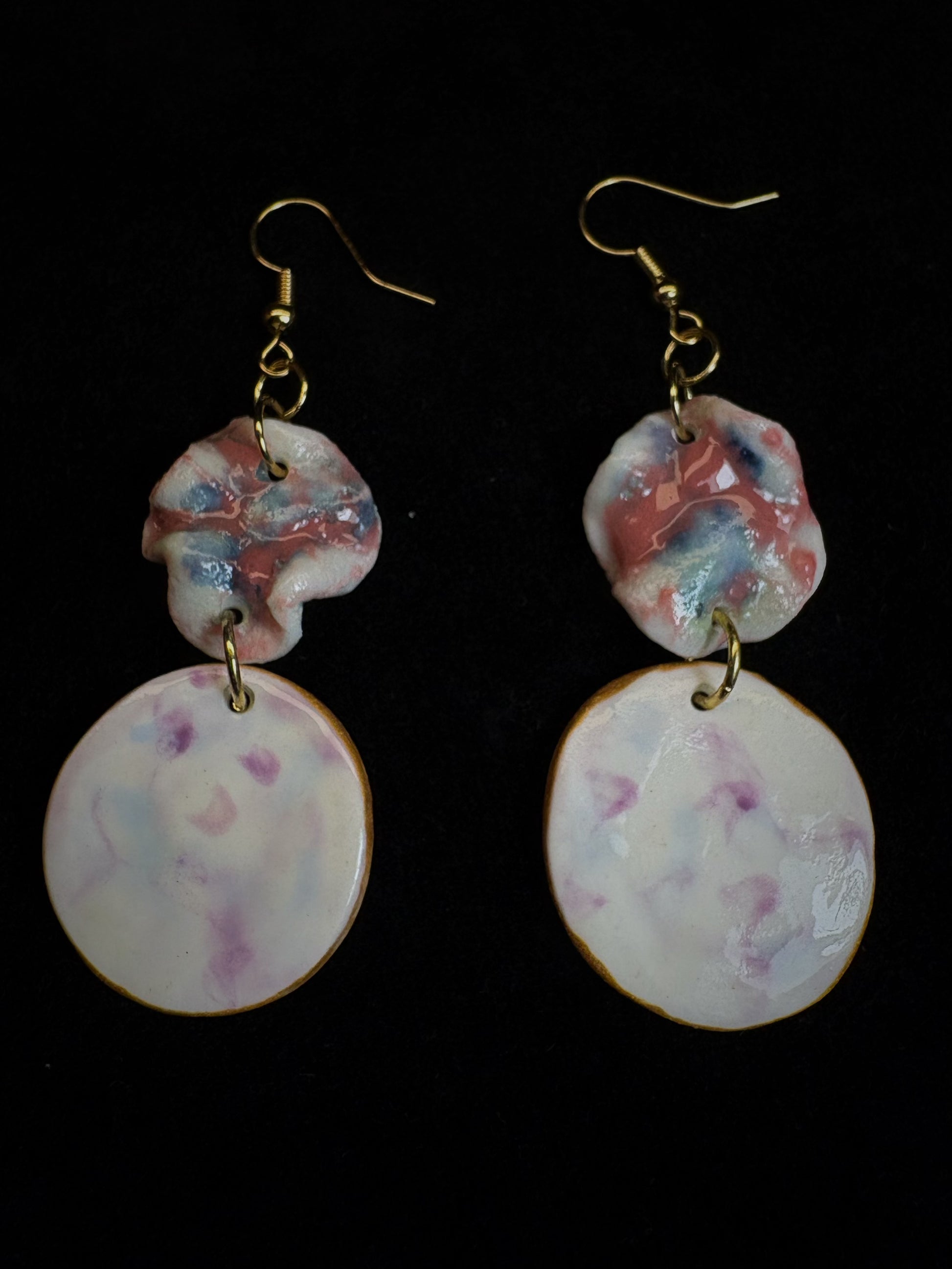 Leuchtende Glasurschichten bilden organische Punkte, Wolken und mikroskopische Landschaften – jedes Stück ein spontanes Farbexperiment und ein echtes Unikat.